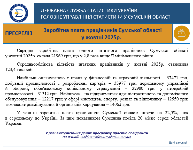 e-mail: poshirenya@sumy.ukrstat.gov.ua Адреса: вул. Революції Гідності, 16, каб.14, м.Суми, Україна.